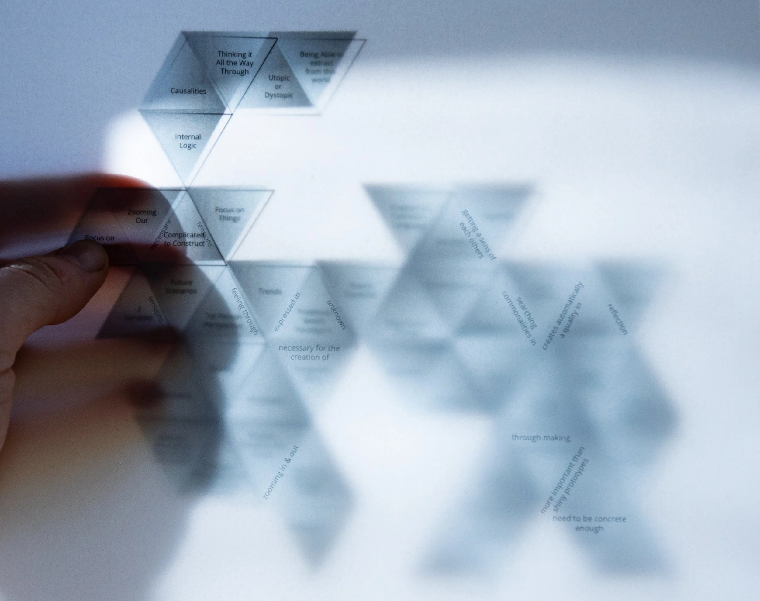 This project has formed the base for my graduation project, as it proposed themes that I have re-iterated upon later. The aesthetical qualities used to facilitate the discussions also inspired me to develop this in more detail, as can be seen in my graduation project.